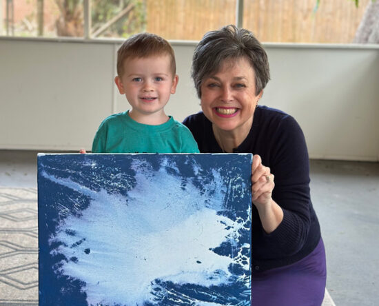 My latest art project was a fun, creative adventure with my 3-year-old grandson, blending nature, paint, and play. Using navy blue exterior house paint on five white canvases, we built spontaneous layers step by step. He had a blast applying paint with natural tools—leaves, twigs, and bark—and creating unique textures. At first, I thought the…