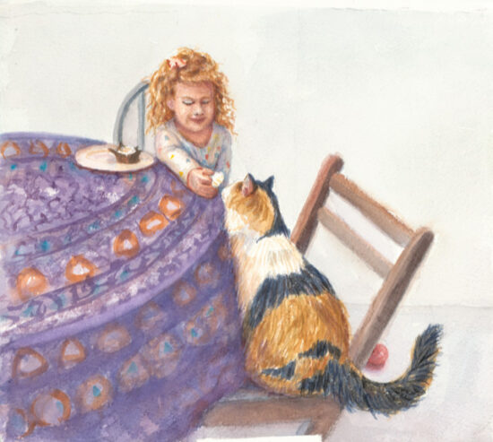 “When Ella dips her finger into the swirl of whipped cream, I lick my lips. When Ella looks at the whipped cream, she licks her lips. Then Ella leans down and gives ME the big swirl of whipped cream. On HER birthday.” Sushi the Cat was inspired while I worked for my church as a…