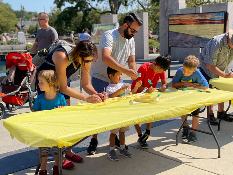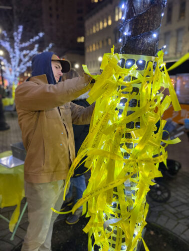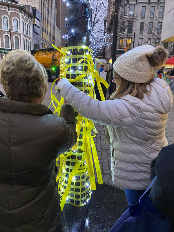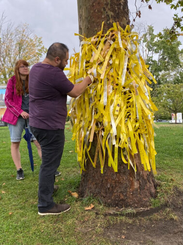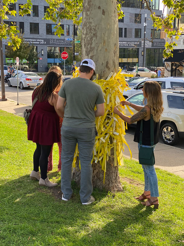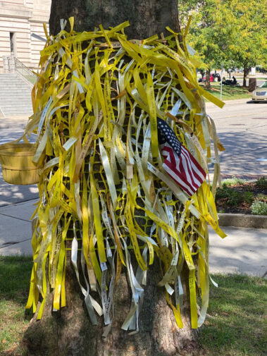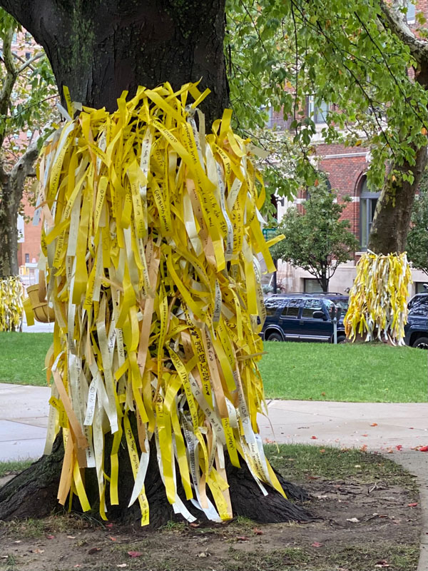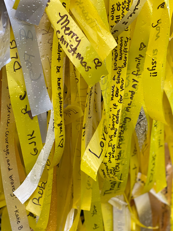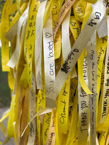 Yellow Ribbon was a large-scale participatory art project led by artist Pamela Alderman that invited the public to write messages of hope and encouragement for members of the military. Over three years, more than 30,000 notes were collected from people of all ages and backgrounds, each one a tangible expression of care and solidarity. Bundled together and sent overseas, these messages reminded deployed soldiers that they were not forgotten and that their service was deeply valued. The project not only uplifted the soldiers, but also strengthened community bonds at home, allowing participants to experience the healing power of gratitude and generosity.